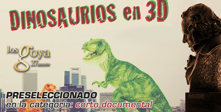 El corto “Dinosaurios en 3D” ha sido preseleccionado a los premios Goya en la categoría de mejor corto documental. “Dinosaurios en 3D” es un corto dirigido por Juan Beiro –diplomado por la ECAM (7ª promoción) – y producido por Zampanò, responsable de otros títulos como El mueble de las fotos, El misterio del pez o Libra, entre otros. Se trata de la primera experiencia en corto documental del director gallego, Juan Beiro, quien antes había realizado sobre todo cortos de ficción, además de dedicarse a la publicidad y la realización televisiva.