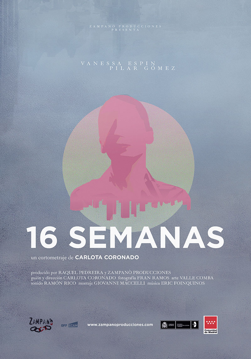 16 semanas es un corto producido con ayudas de la CAM y del ICAA. Ha ganado a mejor corto en Giza Eskubidea Herrira Korto, a mejor guión en la Semana de Cine Español de Mula, y una mención especial en Cortos por la Igualdad. Seleccionado en 45 festivales internacionales, entre los cuales la Semana de Cine de Medina del Campo y el Festival de Cine de Madrid PNR, festivales preseleccionadores de los Premios Goya.