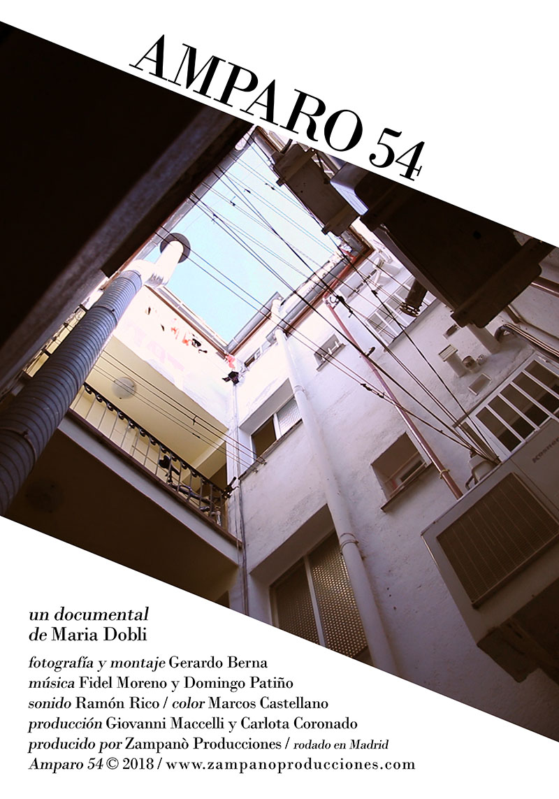 Amparo 54 es un documental sobre la vida en una comunidad de vecinos del barrio de Lavapiés, en Madrid. Producido por Zampanò, es la primera película dirigida por la francesa Maria Dobli.