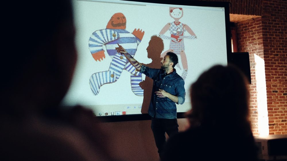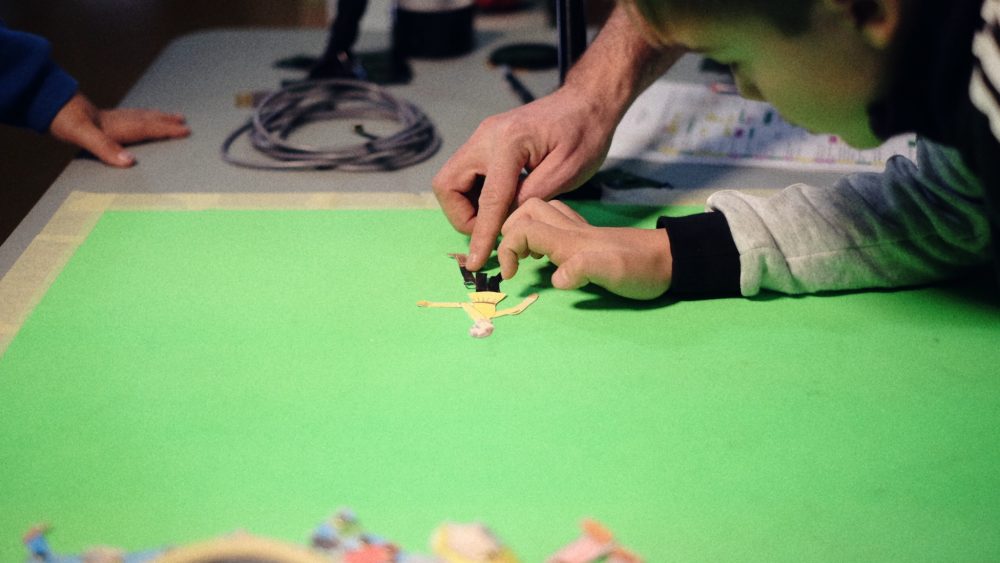 Taller de animación stop-motion en Mi Primer Festival, realizado en el Centro Cultural Conde Duque. Las familias aprenden a colaborar, grandes y pequeños, para producir juntos un cortometraje inspirado en la leyenda del origen del mote «gato» de los habitantes de Madrid.