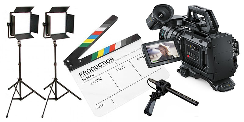 cámara pro 4K + micro pro + kit iluminación + técnico para la configuración del set.