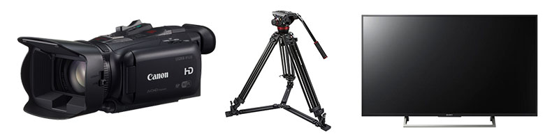 cámara + trípode + TV 55″.